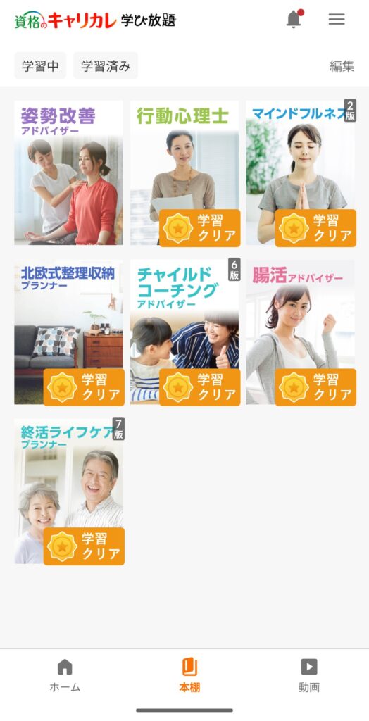 本棚にテキストや映像授業がどんどん増えていくのも楽しく、学びを続けるモチベーションにつながっています。